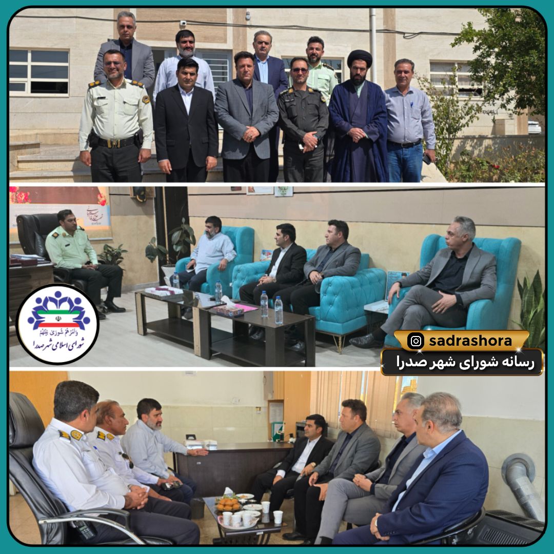 🔹به گزارش روابط عمومی شورای شهر صدرا، مهدی کشاورزی رئیس شورابه همراه خداکرم فیروزمند، حمید صادقی اعضای شورای اسلامی شهر صدرا با فرماندهان کلانتری های صدرا و پلیس راهور دیدار و گفتگو کردند.