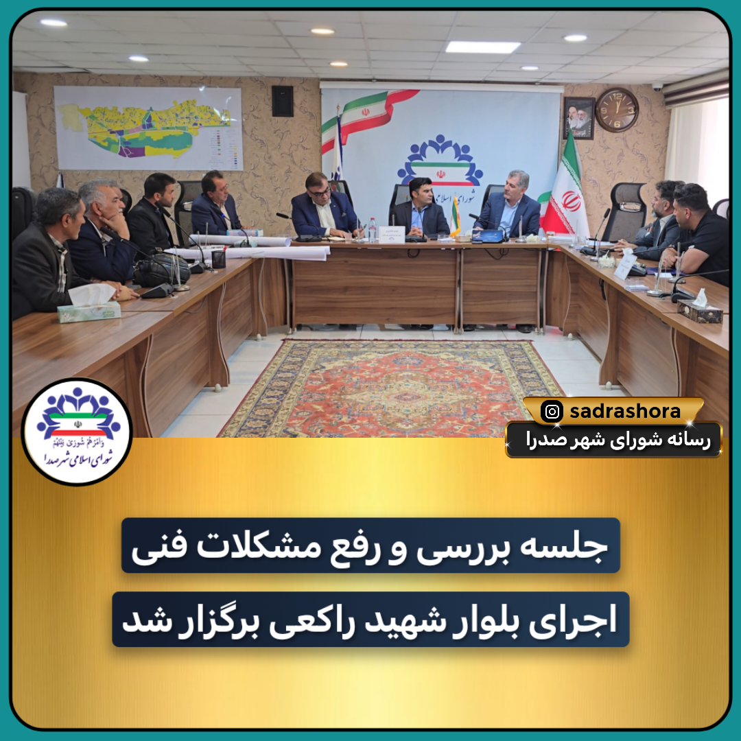 جلسه بررسی و رفع مشکلات فنی اجرای بلوار شهید راکعی با حضور رئیس شورای شهر صدرا، مدیران شهرداری صدرا و نمایندگان تعاونیهای مسکن اطراف این بلوار در سالن اجتماعات شورای شهر برگزار شد.