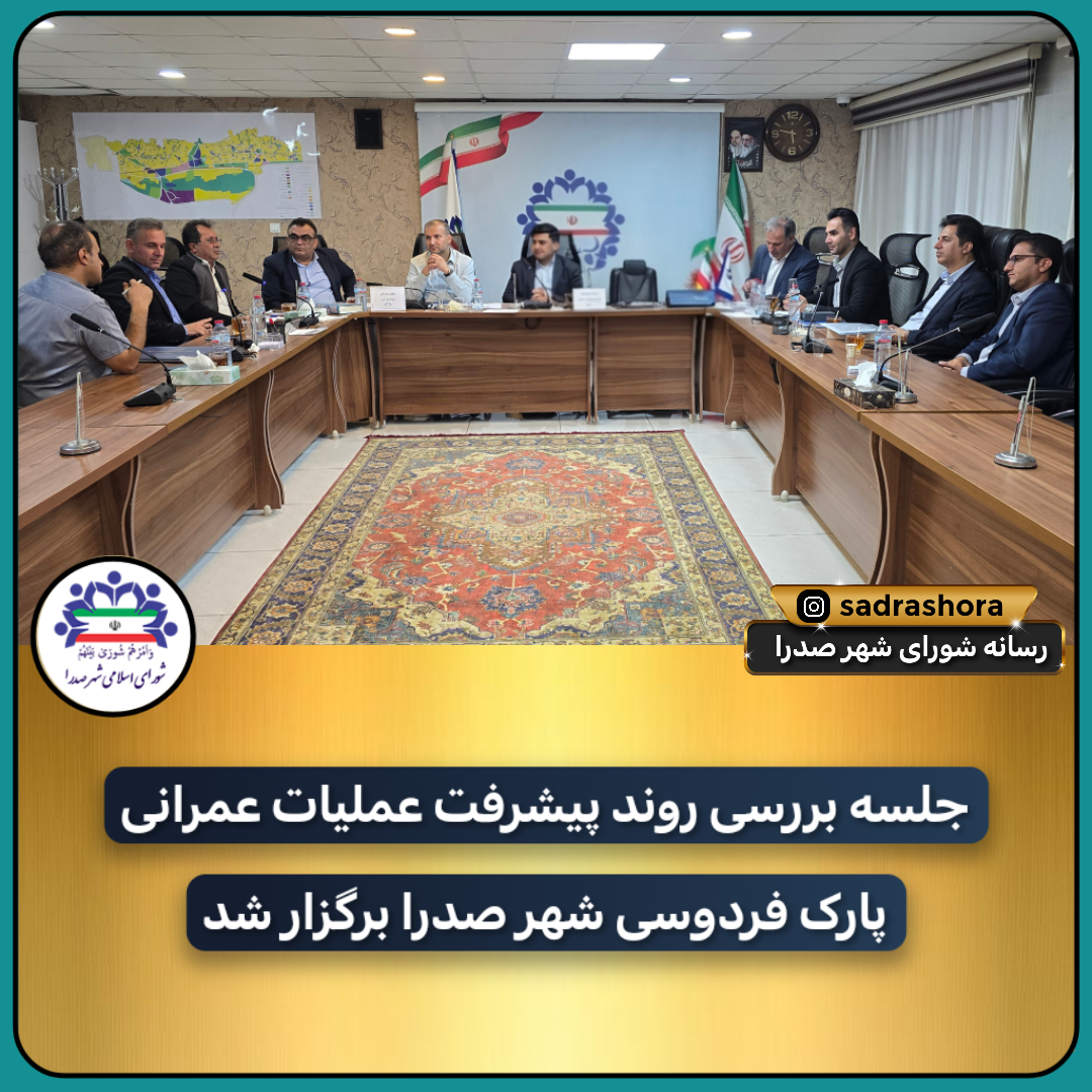 🔹جلسه ای با محوریت بررسی وضعیت پیشرفت فیزیکی و برنامه اجرایی عملیات عمرانی پارک فردوسی با حضور مهدی کشاورزی رئیس شورا ، آرش محمدی سخنگوی شورا، حمید صادقی رئیس کمیسیون شهرسازی شورای شهر، مجتبی پارسایی شهردار صدرا، به همراه معاونین، مدیران واحدهای عمران، فضای سبز، خدمات شهر در سالن اجتماعات شورای شهر صدرا برگزار شد.